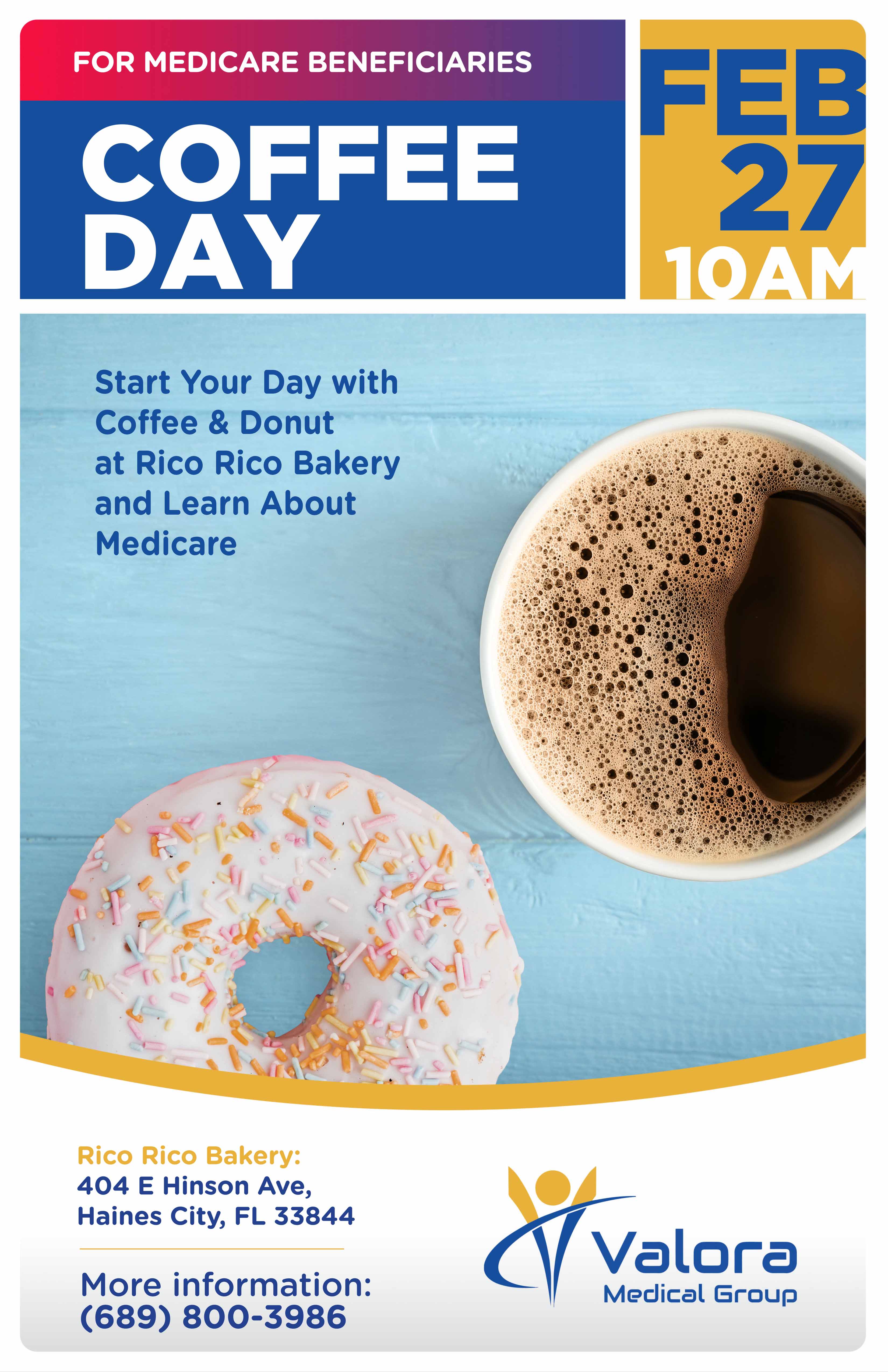 Start your morning with Coffee & Donuts at Rico Rico Bakery and learn more about Medicare benefits in a friendly, relaxed setting! Bring a friend, ask questions, and get the information you need.