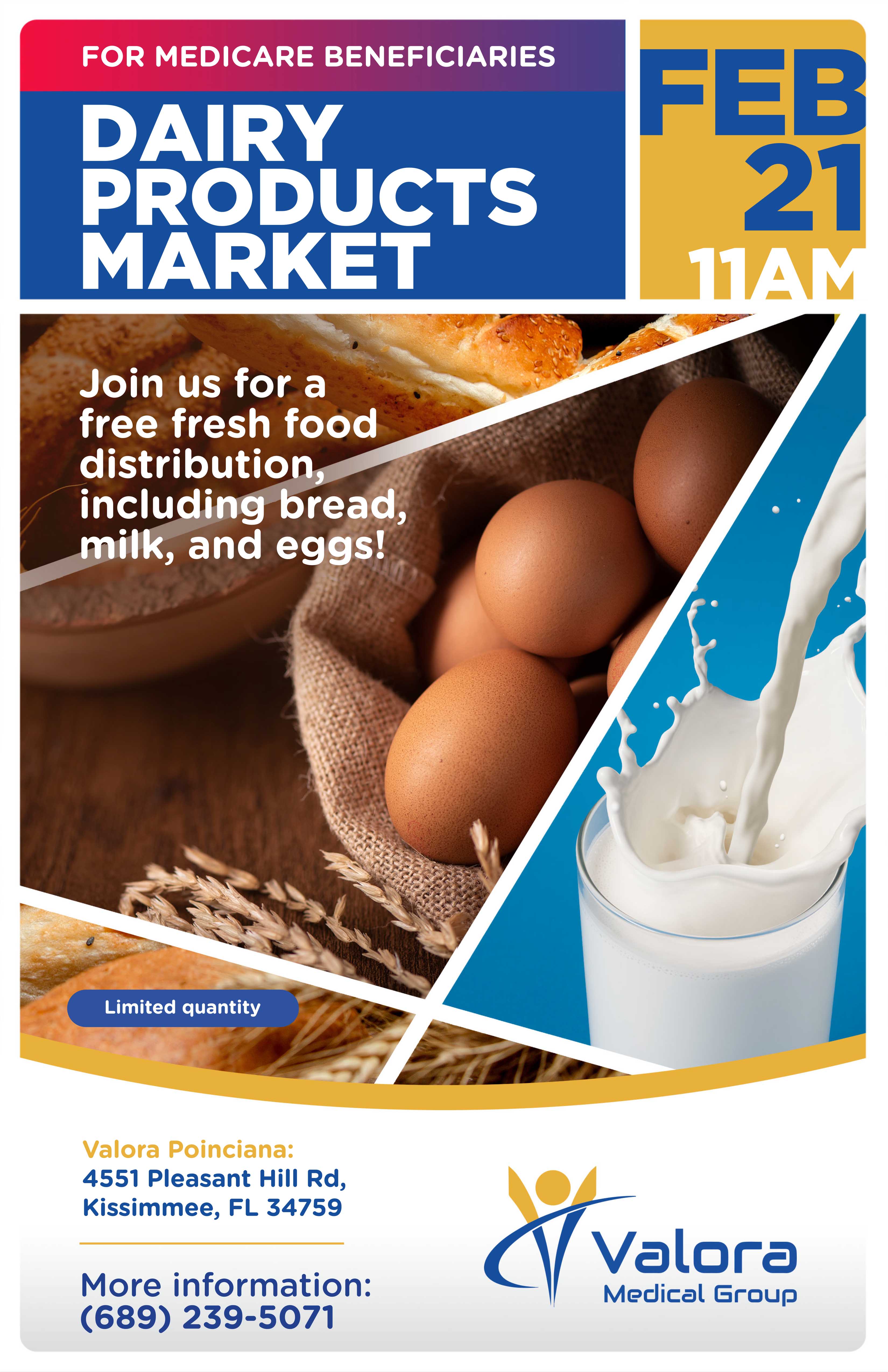Don't Miss Out on FREE Dairy Goodies. Join us In Poinciana for a Dairy Products Giveaway exclusively for Medicare beneficiaries. Get fresh bread, milk, and eggs— FREE!