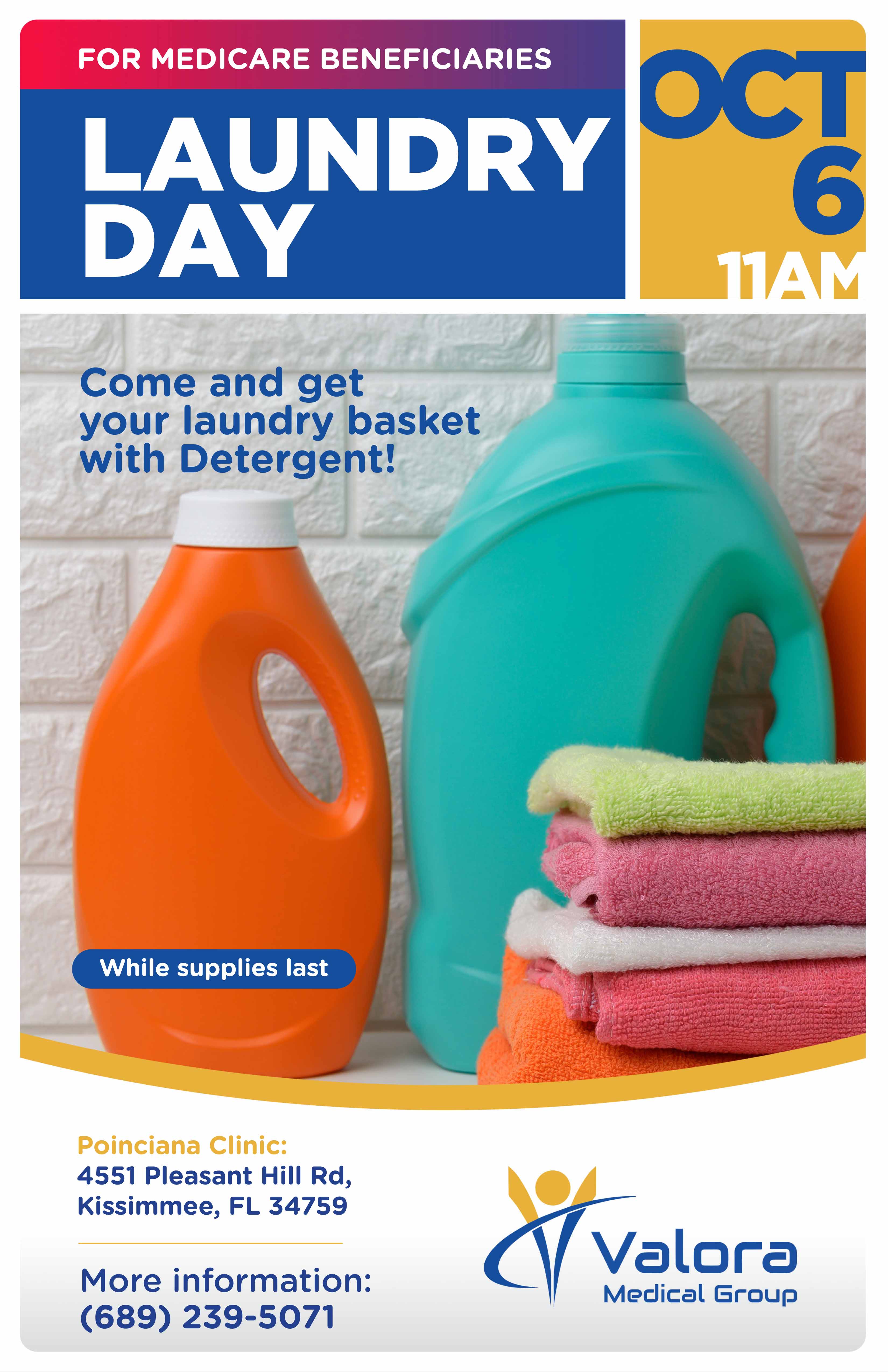 Join Us for Laundry Day! 🧺 Medicare Beneficiaries—swing by the Poinciana Clinic to pick up a FREE laundry basket filled with detergent!